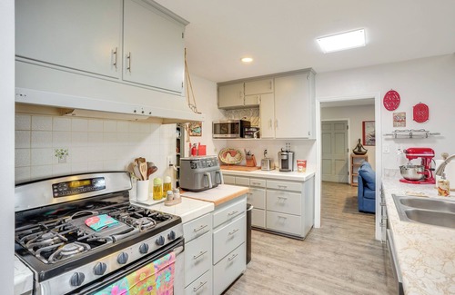 Find your ultimate SoCal escape at this chic 2-bedroom, 2-bath vacation rental! The home is designed for relaxation — enjoy a drink by the flickering fire pit or slide into the hot tub after a sunny day exploring the coast. Whip up dinner on the grill, then visit Belmont Shore just 2 miles away for sands, eats, and sunsets. This Long Beach gem is made for travelers seeking unbeatable access to beaches and vibrant city life!