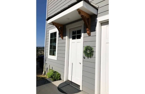 New guesthouse, up the lane, in the quiet Hidden Meadows neighborhood. Second floor beautiful views of trees and hillsides. Full spacious kitchen. Designed to be a great place for a family to rest and relax between fun outings in San Diego and Orange County.