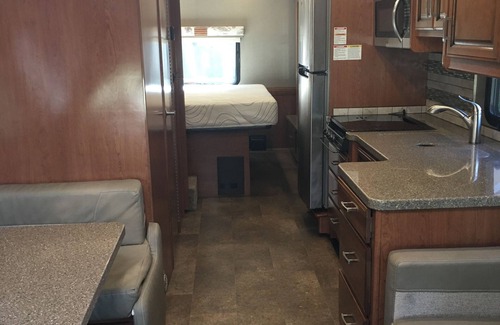Seacliff State Beach Campground with 31ft Class C Motorhome delivered and fully set up with full hookups.. Glamping on the beach like no other . Just bring your cloths and get ready to enjoy Santa Cruz fun. The 2017 RV comes fully equipped with all amenities pots pans ,outdoor chairs including 2 dream catchers, BBQ with griddle , 6 ft folding table and outdoor entertainment center comes with TV/Stereo refrigerator and bar. Bike rack optional . Min 3 days or take all 6 days .