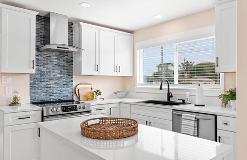Ocean view home steps from the ocean with beach access and views of the light house. Enjoy the gorgeous ocean views and sunsets from the outdoor seating or through the picture windows cozy inside. Every aspect of this home has been remodeled to breath new life into it. Tastefully decorated in a modern coastal decor. Fenced backyard with a gas grill, corn hole and net games. Perfect for beach goers and travelers looking to enjoy everything Crescent City has to offer.