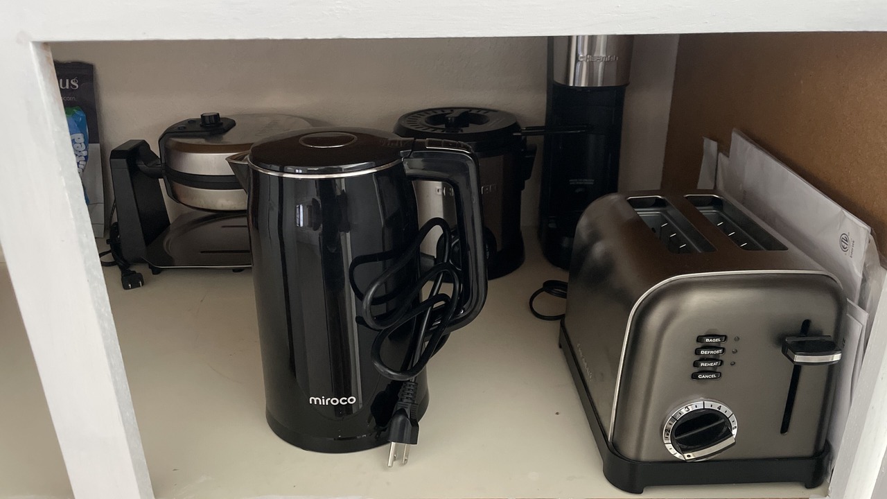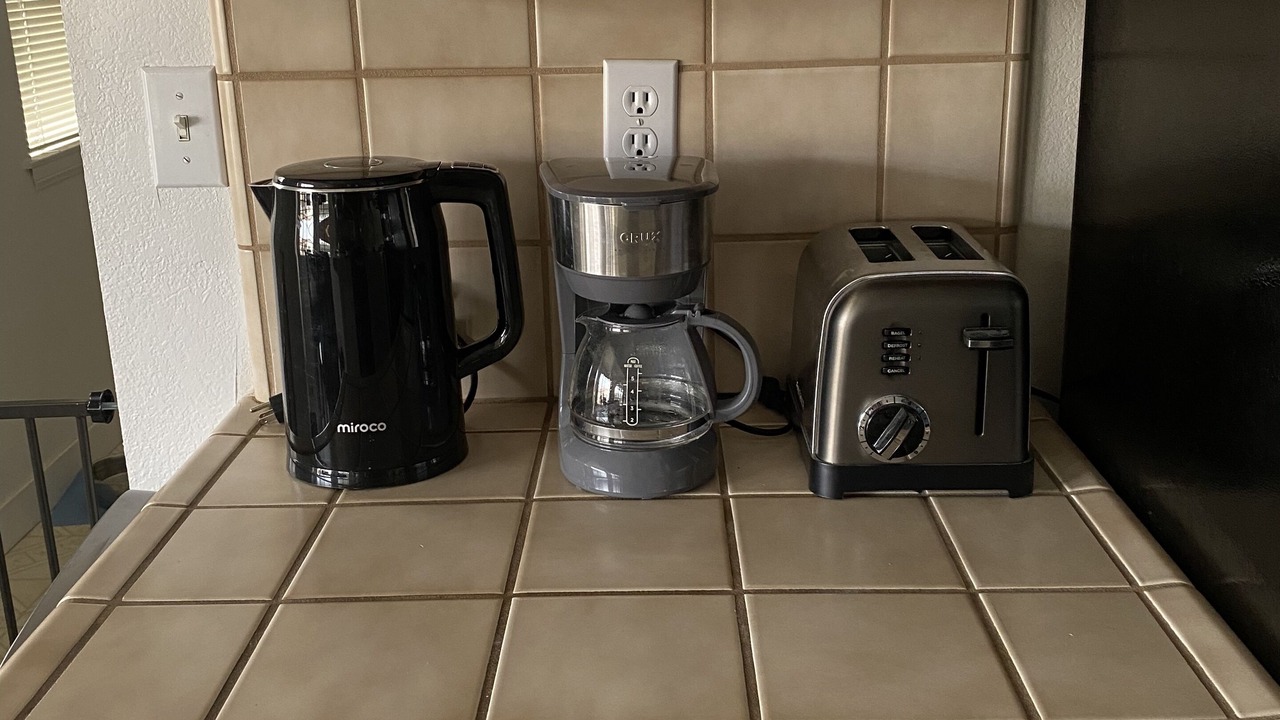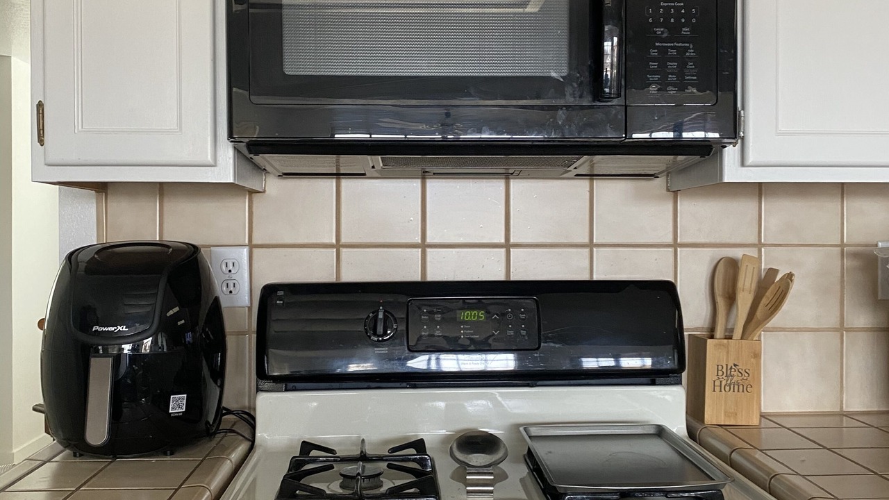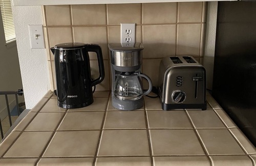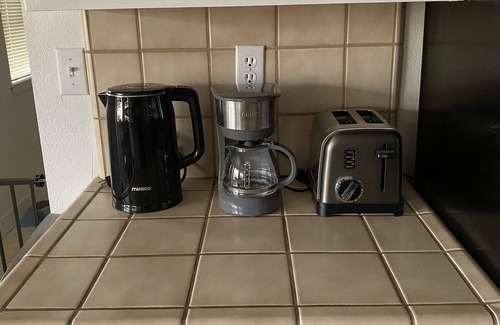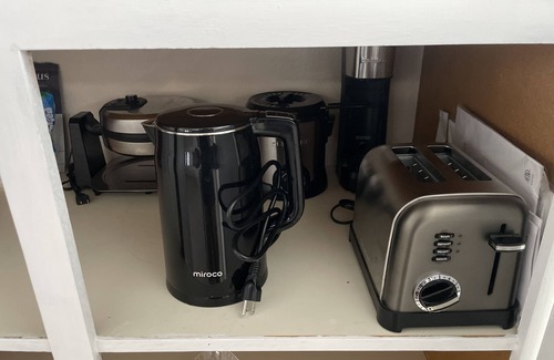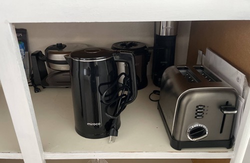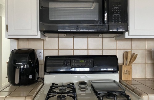 Fully equipped with all your cooking needs. Air fryer, utensils, plates, coffee maker, electric kettle, rice cooker , waffle maker , toaster & toaster oven