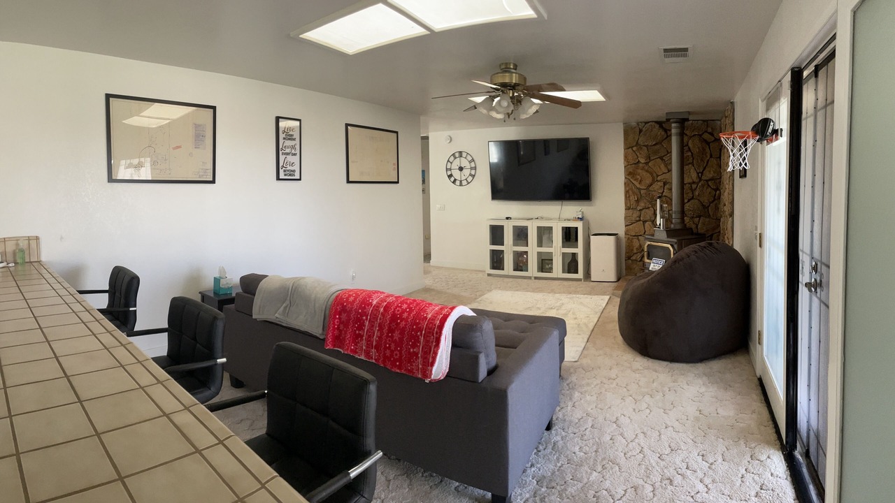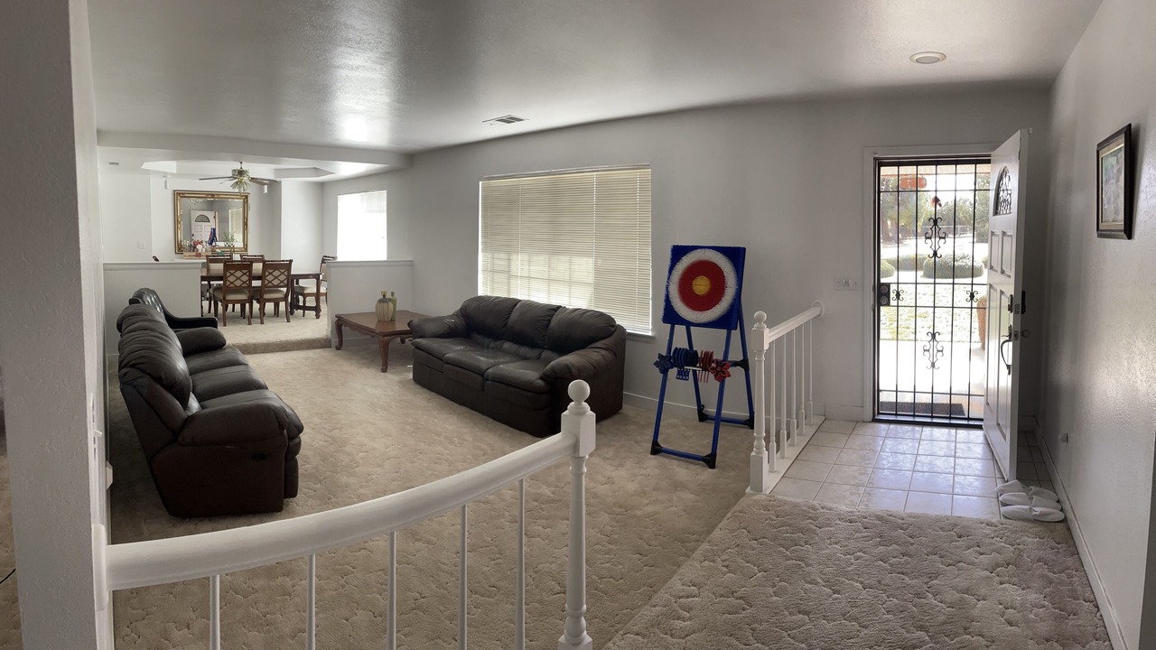 Escape to a beautiful, spacious, and cozy 3-bedroom, 2-bathroom home in the serene high desert. Experience simple and stress-free living with a full kitchen and a range of amenities for your comfort. This retreat is ideal for large families, couples, and even business travelers seeking a relaxing stay. Enjoy endless entertainment with board games, an indoor ax-throwing setup, and a golf putting area. Book your stay now and indulge in a perfect blend of relaxation and excitement!