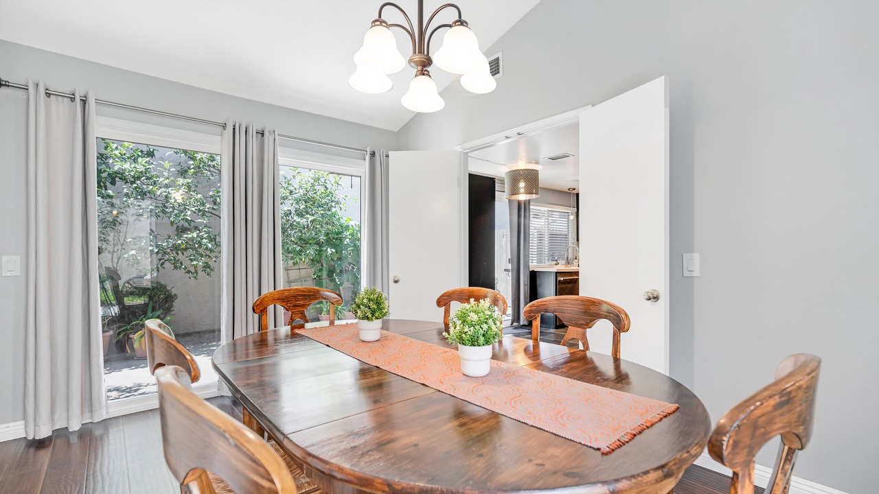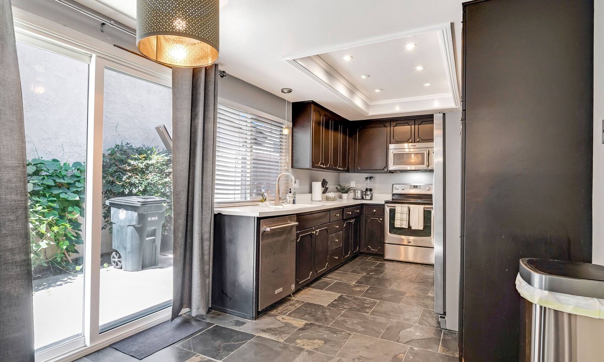 Step inside and you will immediately notice the vaulted ceiling and how open the floor plan feels, with the living, dining, and kitchen all in one line of sight. Natural light streaming in from large double-paned windows, 3 sliding doors and the private atrium off of the living/dining area give you the classic indoor/outdoor California feel.