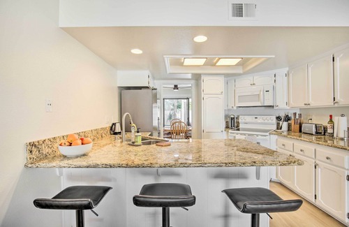 This sunny townhome offers everything you need and more for a flawless long-term stay in Carlsbad! The 3-bedroom, 2.5-bathroom vacation rental boasts an airy interior with an open-concept living space and spacious bedrooms. After a day soaking up rays at the community pool or Carlsbad State Beach, kick back on the private patio with a cocktail. Other highlights include private laundry, a fully equipped kitchen, a Smart TV, free WiFi, and a dedicated workspace.