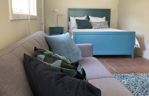 Relax in a beautiful studio guest house. French doors open onto a lovely California garden and large refreshing pool. Enjoy your morning coffee in a private yard full of hummingbirds, fruit trees, and native plants. A swim and a glass of wine at the end of the day will whet your appetite for incredible restaurants choices all close by and convenient.