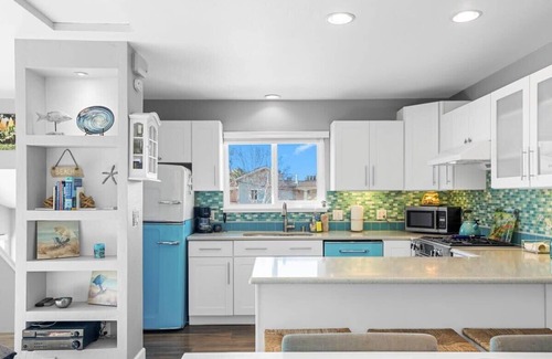 Factor in the backyard with a spa tub for lounging after a day at the beach, and you've got a perfect year-round getaway!