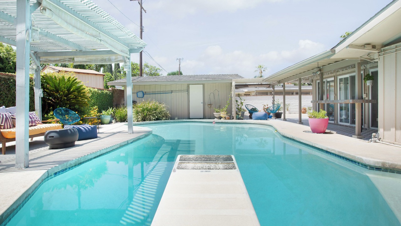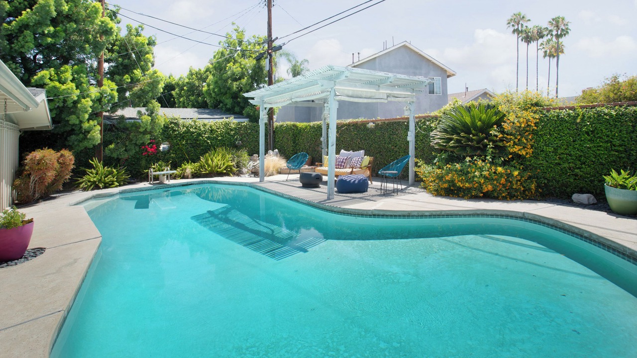 Cheerful mid mod 3 bedroom house w/pool, AC & fast wifi is located in Tustin. Cheerful mid mod 3 bedroom house w/pool, AC & fast wifi provides accommodation, featuring Security/Safety, Sports/Activities, Entertainment, among other amenities. This House features Security/Safety, Sports/Activities, Entertainment, to make your stay a comfortable one.