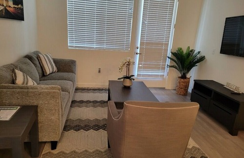 Stay comfortably in Brentwood at this 2-bedroom 2-Bath apartment. The space features 1 king bed and 1 queen bed, perfect for a small group of guests. Enjoy amenities like a washing machine, WiFi, and a fitness room and a large heated swimming pool and Hot tub just a few steps away from the apartment. With 2 bathrooms and a cozy living room with additional queen size airbed, This lovely property offers everything you need for a relaxing stay with 24 hr property community for this private gated community. We look forward to hosting you at our place.