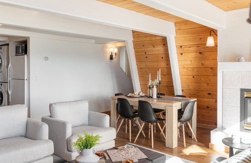 These two sister cabins are flooded with natural light and modern mountain style. Welcome to Chickaree and Chickadee, your unique A-framed escapes nested among the beauty of Tahoe! Floor-to-ceiling windows let the sunshine spill into the open living, dining, and kitchen areas, complete with a fireplace. Outside, enjoy al fresco meals with mountain views from the outdoor dining tables on the patios. Every space at these homes boasts finished wood details paired with a polished design. You'll be just 15 minutes from the Alpine Meadows ski area, with Tahoe City just a 5-minute drive away. Cozy up and snuggle in at Chickaree and Chickadee, a contemporary mountain retreat like no other!