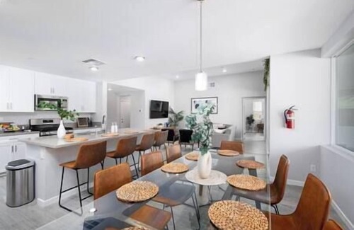 Newbuild modern luxury home! This 4-bed, 3-bath oasis features a climate controlled salt pool, hot tub, sunken fire pit, Casita, outdoor BBQ, putting green, and cornhole. Perfect for relaxation and family fun. We are excited to host you and your group!