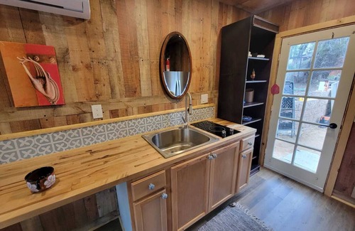 This Blissful Sanctuary is perfect for a couple or individual. Located among the olive trees on a one-acre fully gated property. Queen Murphy bed, deck with mountain view. Kitchenette and full bath. Quiet rural neighborhood.
