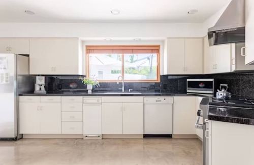 "This swinging 60’s pad is a stone’s throw from the Ace Hotel, a great excuse to see what celebs are poolside. Discover new L.A-based artists with this home’s contemporary collection of modern art and enjoy the master bathroom soaking tub overlooking the cactus garden." Domino Magazine