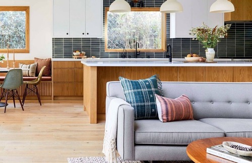 Completely renovated Mar Vista home with pool. Gorgeous mid-century modern design by Ginny MacDonald: custom wood paneling, handmade tile, every detail equally chosen for aesthetics and function. High ceilings, tons of natural lighting.