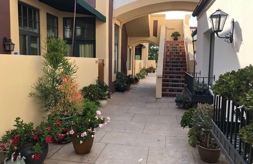 Our home is on the second story of an elevator luxury condominium building -- it's a beautiful loft with 14 foot ceilings in downtown Santa Barbara. The apartment is furnished in a mixed mid-century style with all modern conveniences including a 72" TV, w/d, dw, filtered water, a/c and a terrace with a gas barbecue and outdoor table. The second bedroom/office has a very comfortable wall bed with a brand new queen mattress; the master has a new king bed and a large adjoining bathroom. The dining room seats 6-8 people; there's also a sunroom which is used as a painting studio and a den with an additional TV. There are 2 spaces in the expansive garage.