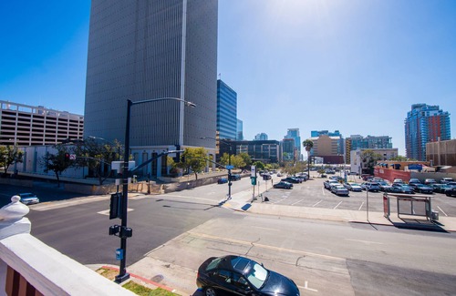 A vintage beauty surrounded by modern, luxury towers, you will enjoy this impeccably remodeled apartment. This unit is part of 4 restored Victorian buildings, and is artfully furnished with wood floors, king beds, Wi-Fi, flat screen TVs in living room and bedrooms, 2 bathrooms, and a kitchen. This unique suite has all the comforts of a hotel and all the charm of a boutique inn. Enjoy one of San Diego's most celebrated historic restorations.
