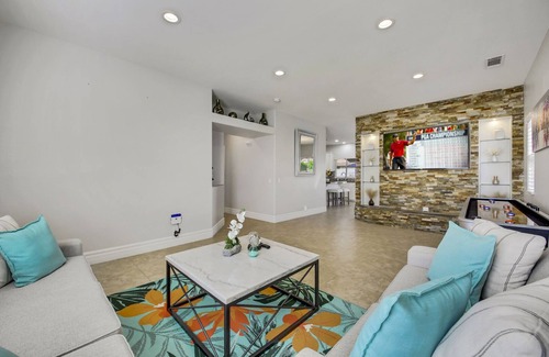 This resort-style home is located in the world-famous community of Indio and is perfect for all your vacation needs. It's where style and sophistication meet entertainment and fun. Treat yourself to the perfect vacation rental close to casinos, golf, and easy access to the freeway. Dulce Vida is a stunning four-bedroom, private pool and spa, offering 1,708 square feet of luxury living. Within the living room, you will experience the perfect area for entertaining. Enjoy the variety of table games and impress your friends with your hidden talent in Mixology or take in a roaring fire while creating new memories on your vacation.