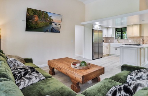 Make memories at this family-friendly one acre property, with salt water pool and spa, with fruit trees, playground overlooking horse breeders, and gorgeous mountain views and private trails, 10 minutes to Reagan library 30 minutes to world famous beaches, 45 minutes to LAX and 40 minutes to LA tourist attractions. Enjoy the quiet country after exploring LA. 2 Queen over Queen bunks, one king bed and two queen rooms - all brand new with soaking tub and upgraded appliances. Sleeps 14. Completely renovated in early 2023. Owners on property