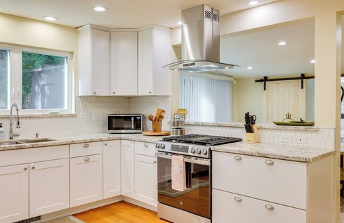 Get the most out of your next stop in the Sierra Nevada Mountains while staying at this Hathaway Pines vacation rental, just steps from the Arnold Rim! Boasting a beautiful wooded setting, this 4-bedroom, 2-bath cottage is ideal for year-round outdoor fun. Explore trails at Calaveras Big Trees State Park or fish on White Pines Lake! Then, end the day back home with a movie on the backyard projector screen.