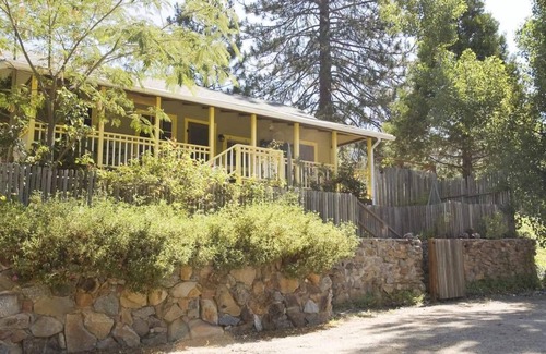 Great for couples, small families, and good friends, it’s a home away from home for fun and comfort in the mountains. It's got free wi-fi, a full kitchen, washer, dryer, fireplace, sauna, claw-foot bathtub, a custom hand-tiled shower inside, and a hot-water shower outside, too. The hillside behind opens out to views of Loggers Point and the San Joaquin Valley below, and the universe above, for delightful evenings of stargazing.