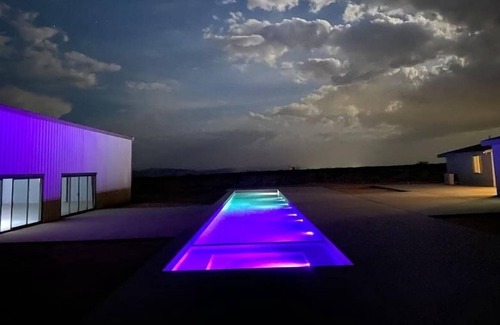 As you open up the sliding doors, you'll be greeted by a breathtaking view of the sparkling pool and stunning desert landscape. Whether you're enjoying a cocktail or taking a dip in the refreshing water, this outdoor space is the perfect complement to your indoor event.