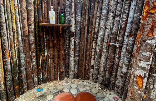 For showering, we have built you a gorgeous spiral outdoor shower. Please use it before you relax under the stars in our 5 person hot tub! Please note, the hot tub is shared.