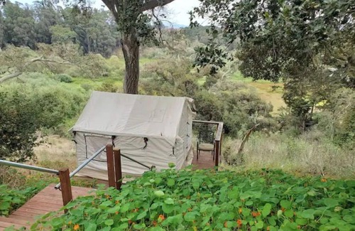 Come Glamp in South Santa Cruz County and share our amazing view of the Harkins Slough Wetlands. We provide an 8'x10' canvas tent with a queen sized memory foam camping mattress and small heater. The canvas tent is perched on our 10'x15' overlook deck. Centrally located between Santa Cruz and Monterey your options for entertainment limitless; taproom, restaurants and the Corralitos wine trail are all just minutes away.