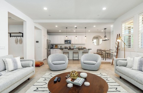 - 5 bedrooms / 3 bathroom - POOL & SPA at Club House - Open Lease: Unlimited availability guaranteed (2 week notice required upon checkout) - Pets welcomed (no additional fee) - NO Parties or loud music (you will forfeit your stay if there are any noise complaints) - Design & Style: Luxury New England aesthetic meets mid-century modern design - Located inside one of LA's safest communities / A quiet neighborhood of single-family homes - 30min to The Valley & approx. 45 min to anywhere in LA