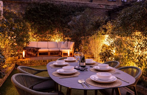 Introducing our freshly renovated Fulham apartment, now available for your enjoyment! Be among the very first to experience its flawless interior design, top-of-the-line appliances, deluxe award winning mattresses adorned with luxurious 500-thread-count Egyptian cotton linens, and a delightful garden space. Situated just a quick 2-minute stroll from Fulham Broadway tube station and a mere 5-minute walk from the iconic Chelsea football stadium.