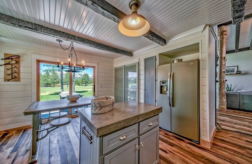The farmhouse-style kitchen provides the ideal space for cooking and eating. The cleverly designed kitchen table with swing-out stools seats 4. This kitchen has all new appliances, gas cooktop, natural stone counters & beautiful natural wood.