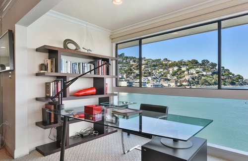 Move in ready. Designer Furniture, Collector Art, California King Beds with Luxury Bedding, Marble Bathrooms, Modern Chef's open Kitchen. Views of Swede's Beach, Sausalito, Tiburon, Belvedere, Raccoon Straight, Angel Island, the Bay Bridge, and Alcatraz. 2 covered reserved parking spaces plus guest parking. 2 large screen TVs.