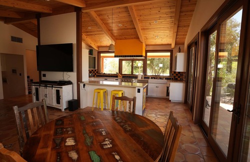 Set on an established winery estate in the Santa Ynez Valley, Casa de Azul y Oro is a stunning recently remodeled home overlooking the Brander Vineyard. Tastefully decorated with Mexican folk art, this is a truly unique property! Located within a five minute walk from Los Olivos Grocery, it will be easy to stock the kitchen with essentials, or dine out at the many wonderful restaurants in the area and bring back and star gaze.