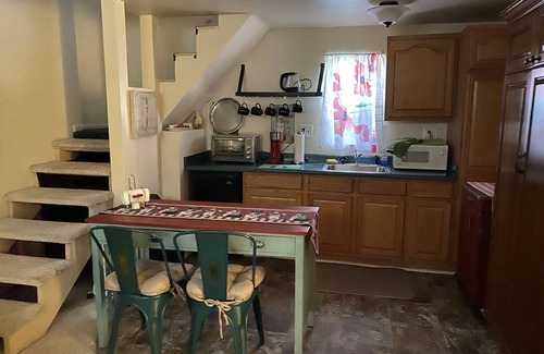 Back house to a 1930 Tudor. Nice space downstairs with living area and kitchenette. Loft is the bedroom. You'll need to duck going up if you're tall and the last four steps are a bit steep. very special space instead of being traditional studio with bed and living areas together. *Please note the last four steps up to bedroom are a little steep- please keep this in mind when booking. Close to Channel Islands boat pick up harbors - Oxnard and Ventura, Movies, restaurants, shopping and 2 miles from sand. Nice area to ride bicycles and easy to navigate by car or bus. Walk to train station and take it to Santa Barbara for wine tasting one day!