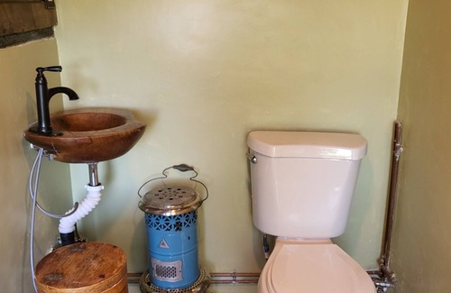 Cozy, comfortable and charming hobbit house on the property of a home in a peaceful setting in the Mission Canyon area of Santa Barbara. The size is approximately 145 square feet. To enter your need to hold on to two rails and step down backwards like a swimming pool.