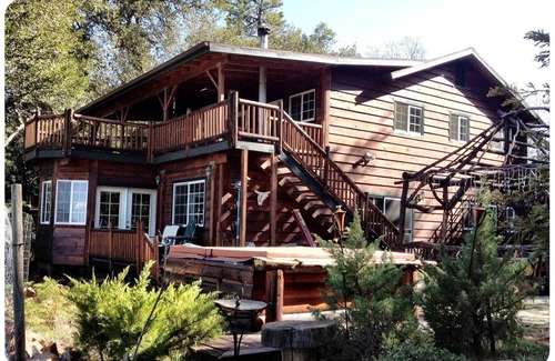 Nestled in Pine Hills of Julian, this uniquely decorated cedar cabin was built in 1927 and has been featured in the Julian Home Christmas Tour. My cabin is rented as 5 bedrooms and 2 baths if requested the 6th bedroom and 3rd bath can be rented for an additional cost. The basic rate per night is for two people. Each additional guest is $50 per person per night. Pet fee is $75 per pet. Holiday rates are additional please inquire with owner. Whether you want a quiet romantic getaway for two or a gathering of twelve for holidays, birthdays, book clubs, business retreats, even small weddings Burgio Bungalow is equipped for your stay. From watching falling stars on the upper deck, playing games with your friends, sitting by the pot belly stove or roasting marshmallows in front of it's original stone fireplace this cabin will let you relax in a peaceful natural environment. Always exciting to watch wild turkeys and deers strolling daily through and around the 1 3/4 acre property. Each bedroom of the Burgio Bungalow is decorated with its very own theme to ensure everyone a great stay!