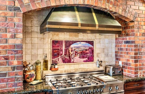 Boasts an Entertainers Tuscan-inspired kitchen that will absolutely delight you! Having everything you could want including a Bertazzoni gas range with double oven/griddle, built-in Miele Nespresso machine, wine cooler, farmhouse sink and convenient butler’s pantry.