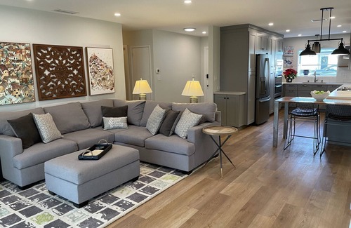 Enjoy your San Diego stay in this upgraded 3-bedroom/2-bath house in a quiet neighborhood of Lake San Marcos. This vacation rental offers a spacious modern kitchen, convertible play room/3rd bedroom, and private backyard with fire pit. Walk to Lake House Resort's marina, St Mark Golf club's courses and multiple dining options. Perfect for families and couples alike.