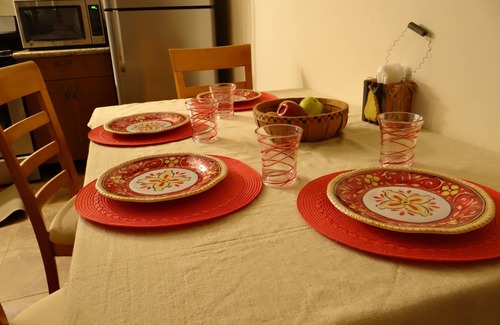 The other main room of the house contains both the kitchen and the living room, but this space is so large that you will never feel crowded. The kitchen boasts full size appliances (gas range and oven), large refrigerator with ice maker, and miles of counter space (including a butcher block island). There is a comfortable table suitable for four adults to enjoy home cooked meals in the kitchen space, and another 4 person table outside on the patio to enjoy the evening breeze and sunsets while eating on the private patio.