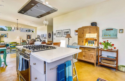 Celia's Garden is a joyful sanctuary - custom built in 2018 just two blocks from downtown Graton and the exquisite restaurants and wine tasting rooms exemplifying West Sonoma County. Happily perched above the Joe Rodota Trail (a locally loved bike and walking trail), families will especially enjoy trekking between small towns, farm stands and parks. This sunny and welcoming property is your home away from home - with an open and well-stocked kitchen, dining and living area is comfortable for entertaining and escaping from city distractions. A playful retreat to open your senses - eclectic books & DVDs, fanciful records, and kid-friendly activities fill the bookcases and drawers.