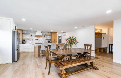 Inside, find 4 stylish bedrooms, a full kitchen, and two relaxing bathrooms. The outdoor living area features a firepit, grill, and large TV, perfect for memorable gatherings. Ideal for family and friends seeking comfort, entertainment, and relaxation in a beautifully designed setting.