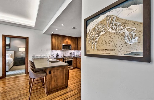 Discover the ultimate mountain retreat at our luxurious and unique condo, steps from the Heavenly Gondola. Enjoy stunning views from the large balcony, free ski and snowboard valet, heated pool, 2 hot tubs, and a well-equipped gym. Just 4 blocks from Lakeside Beach and Marina with free entry passes. Private parking, walk to Heavenly village, casinos, and gondola. Balcony BBQ, 3 TVs, Arcade, PS5, fireplace, wine fridge, family-friendly amenities. WIFI, AC, washer/dryer, gourmet coffee options. Unwind on Pottery Barn/Restoration Hardware furniture. Your perfect escape awaits with 24-hour front desk concierge service.