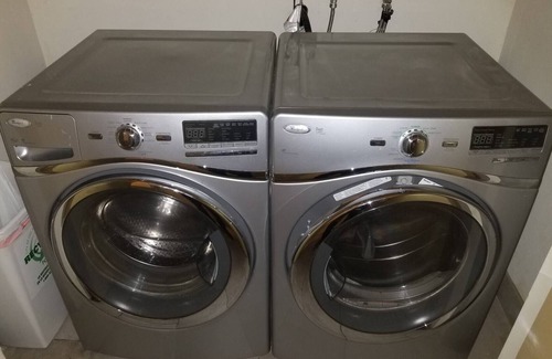 -Free high-tech washer/ dryer set on floor