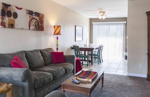 Attractively decorated apartments in a small gated complex less than 1 mile from Downtown Visalia, the Convention Center, Kaweah Delta Hospital District, close to Rawhide Stadium. Grocery store, convenience store walking distance.