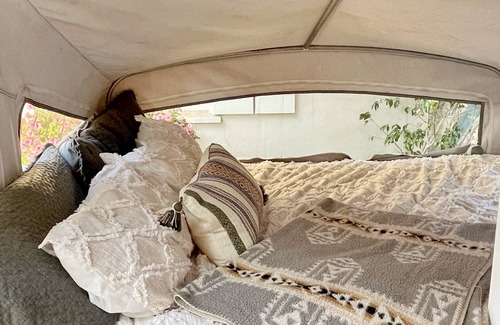 ATTN: This does not come with a location. This cute boho trailer just needs a spot to park. We deliver and set up. This is ideal for a guest house for visitors or a place to stay during your remodel. Housing in SB is limited and we know what it’s like to need more space! The trailer is 20ft and will easily squeeze into a driveway. We prefer to rent on a monthly basis for a 10% discount, but will consider weekly rentals. It has soft and cozy linens, warm textiles, and everything you need to make it your temporary home.