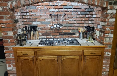 The Kitchen: Stocked with everything you need to cook as if you were at home. Frying pans, pancake cast iron skillet, waffle maker, sauté pans, egg poacher,