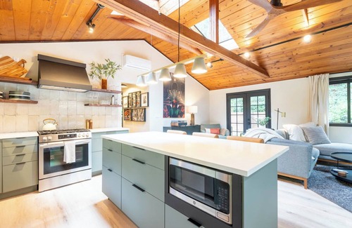 The fully stocked kitchen has everything you need to make a home-cooked meal and all the barware for that perfect cocktail. We've also got you covered with Nespresso Vertuo coffee, a selection of gourmet teas, and a French press. Enjoy your meals at the dining table looking out to the forest, or outside dining under the trees.