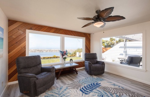 Charming in every way, this ocean view property invites you to spend your mornings on the patio, your days exploring the plethora of natural amenities that our area offers, and your evenings on our western-facing deck watching the sunset with a wine glass in hand. Extra clean, with an abundance of natural light, and a fully-equipped kitchen with everything that you would need for a short or a long- term stay , and the hot tub available to you is PRIVATE and for your exclusive use. This unit also contains a bonus room with a queen size pullout bed that sleeps two. Ocean's Edge is the southern unit in this duplex property.