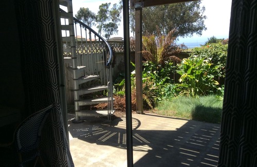 The highlight of Holiday House is the view that you will enjoy from every room, and the very large deck set up for your relaxation, dining, whale watching, listening to bird song, and marveling at the sunset..followed by the twinkling lights of Santa Cruz up the shore. Easy access to Manresa State Beach. Surf, or watch the surfers, beach comb, fly a kite, surf cast: public access beach extends for more than 11 miles! Time spent indoors will be enhanced by the cozy living room, comfortable sofas and dining space, wall mounted 42" smart tv for movies and sports, and lots of books, games, and puzzles. Seriously cute and comfortable to visit, this house has a vintage modern vibe that is designed to be efficient, interesting, and welcoming. It was built in the 70's and features some original finishes and some newer. The 2 bedrooms (new carpet laid November 2021) are furnished with queen beds with new mattresses, bedding, and pillows (one bedroom has an additional twin with trundle bed) and the 1.5 baths are clean and well-appointed with plenty of higher quality towels and lighting. The kitchen is outfitted to cook 3 meals a day with virtually all the tools you expect, if you like that sort of thing! There is a washer and dryer on site, and a garage for your bikes or surfboards so you can unload and clean and lock 'em up.