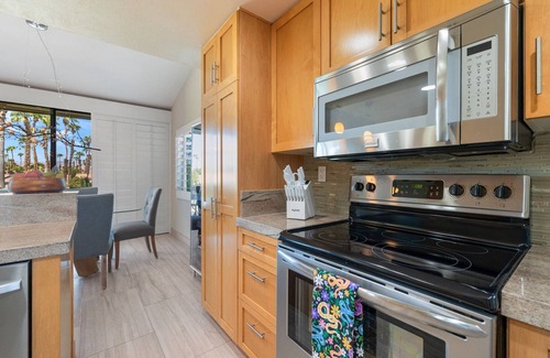 Palm Valley CC Charm | Outdoor Dining on the Patio, Desert Fun, Fitness, Spa, Tennis & Pickle Ball is located in Palm Desert. Palm Valley CC Charm | Outdoor Dining on the Patio, Desert Fun, Fitness, Spa, Tennis & Pickle Ball provides accommodation, featuring Internet, Wellness Facilities, Fireplace/Heating, among other amenities. This Condo features Internet, Wellness Facilities, Fireplace/Heating, to make your stay a comfortable one.