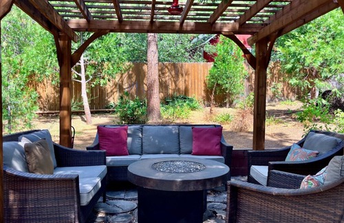 Come and experience the tranquility of "Peaceful Pines." Nestled in a serene pine forest, this peaceful retreat is located less than a mile from the center of Idyllwild, on a spacious half-acre lot. The cozy home features 3 bedrooms, accommodating up to 6 guests. The master suite includes a luxurious king-size bed, and there are two comfortable queen-sized beds in the other rooms. Inside, you can gather in the inviting dining area or step outside to enjoy the BBQ and patio, while your pets roam freely in the expansive fenced yard. Relax in the hot tub or unwind by the inviting fire pit, sharing stories of your daily adventures. Peaceful Pines is an ideal haven for families or groups of friends seeking sanctuary from city life and embracing the peace and seclusion of the mountains.