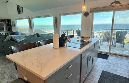 This house sits on a bluff directly above the ocean. Sit in the living room with a 180 degree view of the ocean, hear the waves as they roll in, watch birds of prey land on a cypress tree, and deer, foxes and other wildlife forage on the hill. Occasionally, see a whale or dolphin swimming off shore. At dusk, watch the sun set as you make dinner in the fully equipped kitchen with all new appliances. Later watch the moon and stars come out as you relax to the sound of the waves.